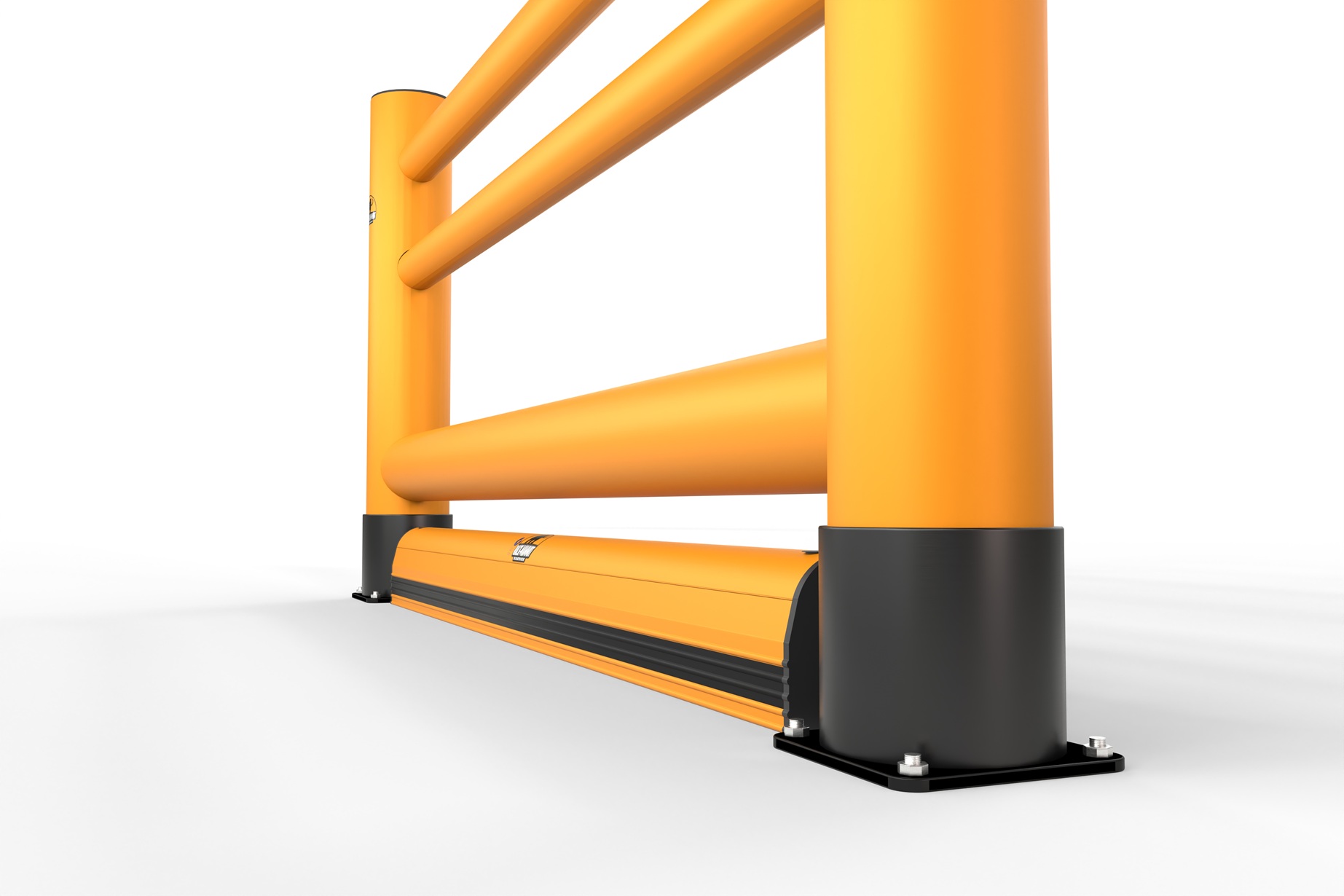 Erweiterter Schutzbereich: Die Bodenbarriere schützt zusätzlich unterhalb der Rammschutzbarriere und erhöht die Sicherheit in bodennahen Bereichen.